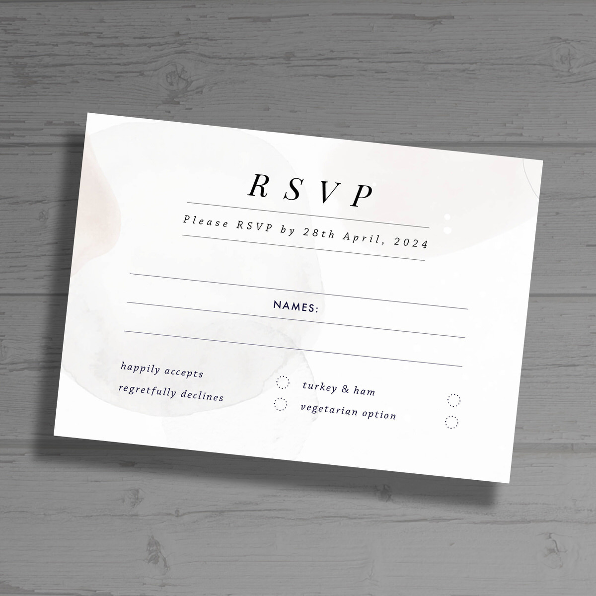Once you’ve placed your order, simply email your wording to sales@wooinvitation.com
